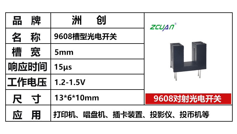 槽型開關9608槽距寬5mm U型對射光電開關